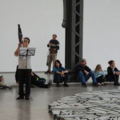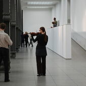 Performance von Daniel Ott: »21-10-22-10« (Flanierkonzert) im Hamburger Bahnhof – Museum für Gegenwart beim Festival NOW – Das Jetzt der Erkennbarkeit. Orte Walter Benjamins in Kultur, Kunst und Wissenschaft