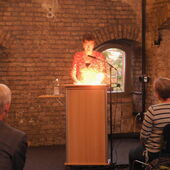 Bilder von der Eröffnung der Interventionsausstellung »Kopfarbeit. Videoperformances von Eva Wandeler« des ZfL im Berliner Medizinhistorischen Museum der Charité (BMM) am 11.09.2014